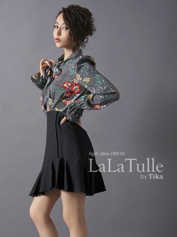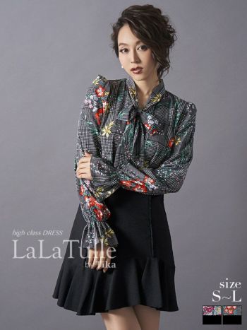 キャバドレス LaLatulle ララチュール グレンチェック×花柄ブラウス風ミニドレス(1color)(S/M/L)(青田夏奈 着用)【送料無料】