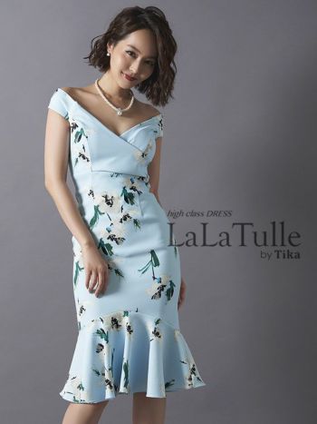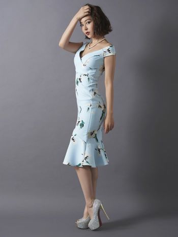 4. フラワープリント マーメイド タイトひざ丈ドレス[2color][Lあり][青田夏奈/キャバドレス着用]