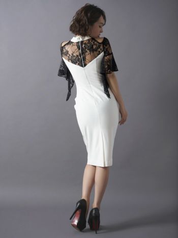 4. フリルスリーブレース切替 タイトひざ丈ドレス[2color][青田夏奈/キャバドレス着用]