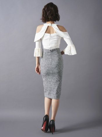 4. フリルスリーブ セットアップ タイトひざ丈ドレス[2color][青田夏奈/キャバドレス着用]