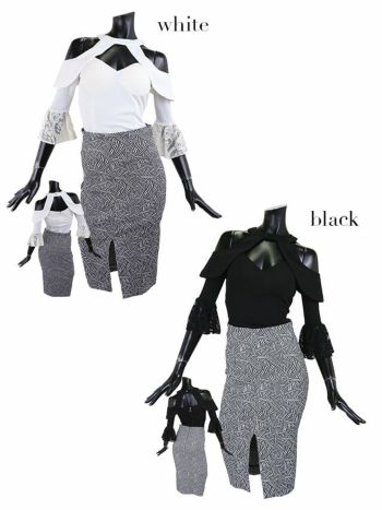 高品質な大人綺麗なキャバドレス♪ フリルスリーブ セットアップ タイトひざ丈ドレス[2color][青田夏奈/キャバドレス着用]
