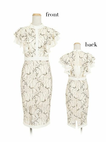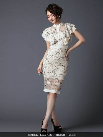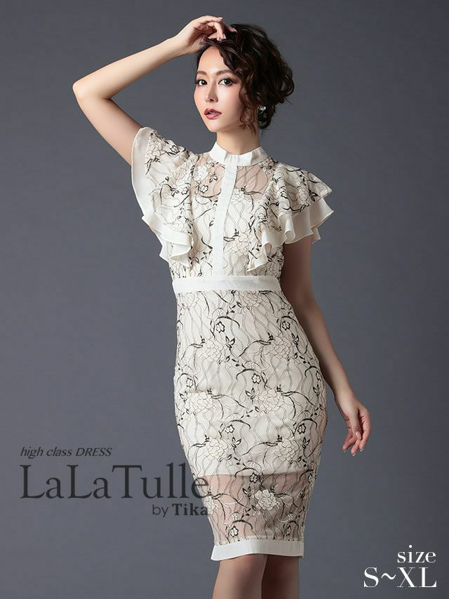 高品質でロープライスなオリジナルキャバドレス♪ フリルスリーブ刺繍 タイトミニドレス[1color][S/M/L/XL]