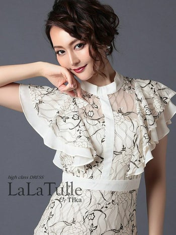 [LaLaTulle][ララチュール]フリルスリーブ刺繍タイトミニドレス(1color)(S/M/L/XL)[送料無料]