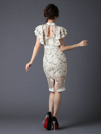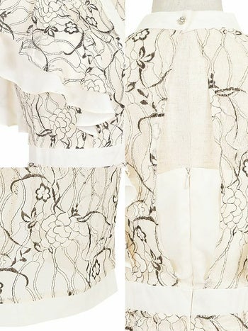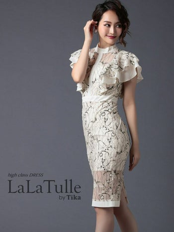 ベージュ [LaLaTulle][ララチュール]フリルスリーブ刺繍タイトミニドレス(1color)(S/M/L/XL)[送料無料]