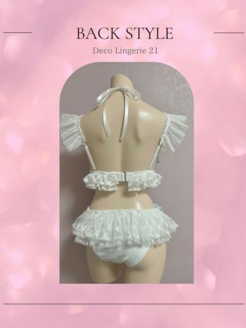 3. 【水着】【Deco Lingerie/デコランジェリー】スパンコールチュール フリル リボン 刺繍レース フラワー ガーリー ビキニ 上下セット[ビキニ/ショーツ](ホワイト)(DL21WH)