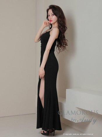 4. 【GLAMOROUS/グラマラス】ストレッチ ワンカラー マーメイド ラメ スリット キャミソール マーメイドロングドレス(gmsv829)