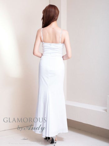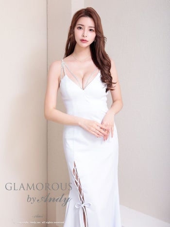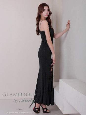 3. 【GLAMOROUS/グラマラス】キャミソール ラインストーン ラメ スリット レースアップ リボン タイトロングドレス(gmsv862)