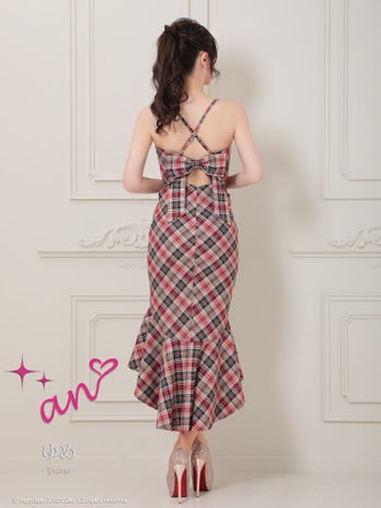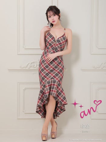 キャバドレス ミニドレス an アン マーメイド チェック柄 ジップデザイン テールカット フリルテール リボン キャミソール ロングテールドレス