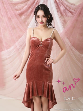 3. 【an/アン】ハートカット キャミソール ベロア パール フリル ロングテールドレス(aoc3985)