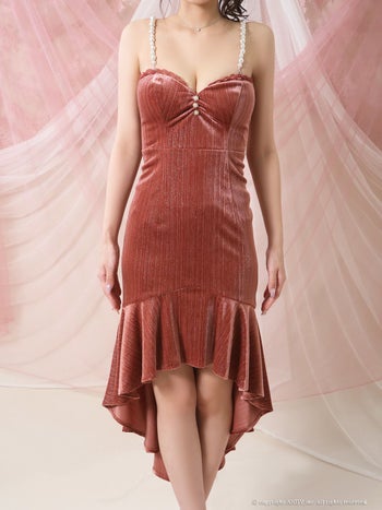 4. 【an/アン】ハートカット キャミソール ベロア パール フリル ロングテールドレス(aoc3985)