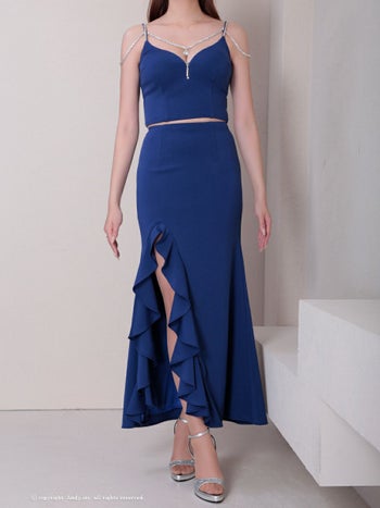 キャミソール セットアップ ジップデザイン フリル スリット ラインストーン チェーン ロングテールドレスのメイン画像1
