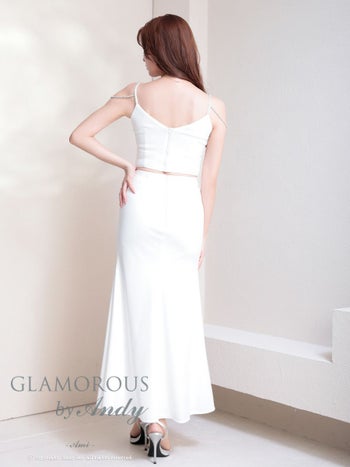 3. 【GLAMOROUS/グラマラス】ジップデザイン セットアップ キャミソール フリル スリット ラインストーン チェーン ロングテールドレス(gmsv858)