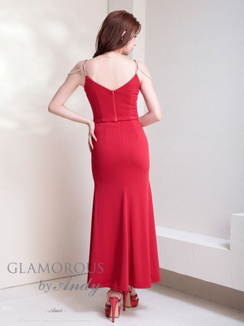 スリットから覗く美脚がsexy♡ 【GLAMOROUS/グラマラス】ジップデザイン セットアップ キャミソール フリル スリット ラインストーン チェーン ロングテールドレス(gmsv858)