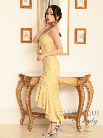 キャバドレス ミディアム ドレス GLAMOROUS グラマラス 裾フリル 総レース ジップデザイン マーメイド テール 膝丈ドレス