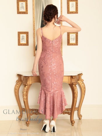 ミディアム丈のマーメイドドレスで大人綺麗♪ 【GLAMOROUS/グラマラス】総レース 裾フリル ジップデザイン マーメイド テール 膝丈ドレス(gmsv734)