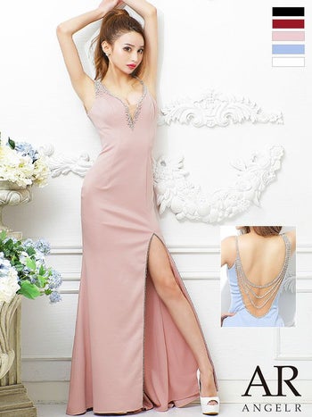 4. 【Angel R/エンジェルアール】キャミソール スタイルアップ バック ビジューラインスリット タイトロングドレス(AR21324)