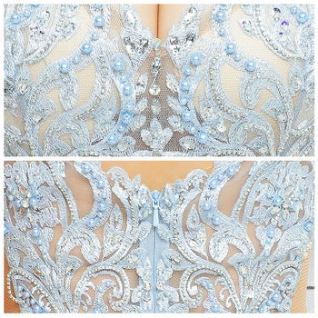 セクシー サイドスリット アップフロントレース ビジュー ウエストサイドシースルー タイトロングドレス