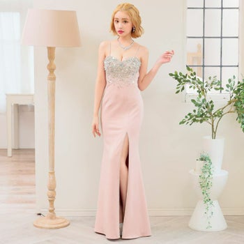 4. 【Angel R/エンジェルアール】バックレースアップ キャミソール バストスパンコールビジュー タイトロングドレス (AR24327)