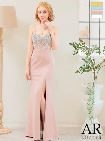 ワンランク上へと導く☆ 【Angel R/エンジェルアール】バストスパンコールビジュー サイドスリット バックレースアップ キャミソール タイトロングドレス (AR24327)