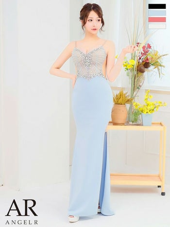 周囲の視線を独り占め☆ 【Angel R/エンジェルアール】ビジュー くびれ透け セクシー オープンバスト キャミソール スリット タイトロングドレス (AR24332)