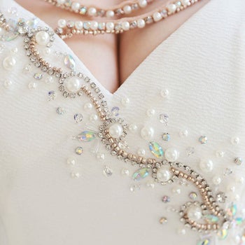 キャミソール パールビジュービーズ バストビジュー サイドスリット セットアップ タイトロングドレス