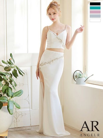 程よいSEXYさが周囲を魅了する☆ 【Angel R/エンジェルアール】セットアップ キャミソール パールビジュービーズ バストビジュー サイドスリット タイトロングドレス (AR24809)
