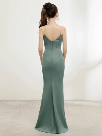 4. 【Angel R/エンジェルアール】フロントビジュー くびれ透け スリット キャミソール オープンバスト タイトロングドレス (AR25259)