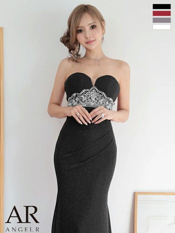 キャバドレス Angel R エンジェルアール セクシー 2way ベアトップ キャミソール ウエストビジュー タックデザイン バックレースアップ タイトロングドレス