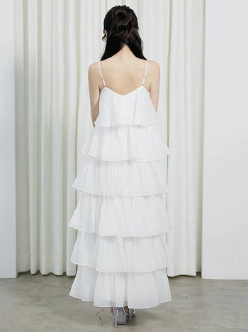 4. 【Angel R/エンジェルアール】ティアード フリル キャミソール フェミニン フレアロングドレス (AR25834)