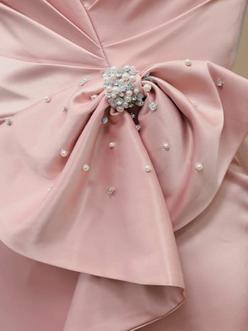 4. 【Angel R/エンジェルアール】キャミソール オープンバスト ウエストリボン タック ビジュー サテン スリット フェミニン タイトロングドレス (AR25855)