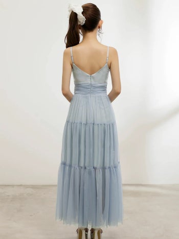 4. 【Angel R/エンジェルアール】 ビジュー ネックパール メッシュ チュールスカート キャミソール Aラインロングドレス (AR25877)