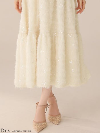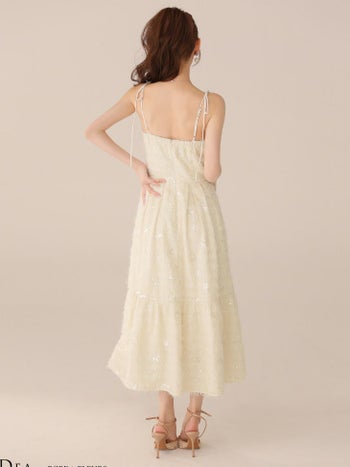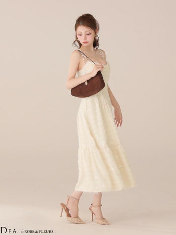 4. 【DEA.by ROBE de FLEURS/ディア】エレガント キャミソール オープンバスト スパンコール エンブロイダリーレース チュール Aラインロングドレス(DE3485)