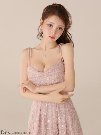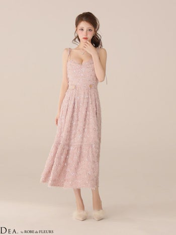 キャバドレス DEA.by ROBE de FLEURS ディア エレガント キャミソール オープンバスト スパンコール エンブロイダリーレース チュール Aラインロングドレス