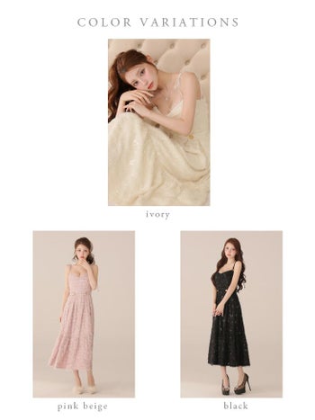 3. 【DEA.by ROBE de FLEURS/ディア】エレガント キャミソール オープンバスト スパンコール エンブロイダリーレース チュール Aラインロングドレス(DE3485)