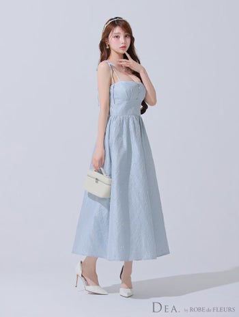 Lあり!爽やかロングワンピース♡ 【DEA.by ROBE de FLEURS/ディア】パール シンプル ジャガード サテン キャミソール ワンカラー Aラインロングドレス(DE3591)