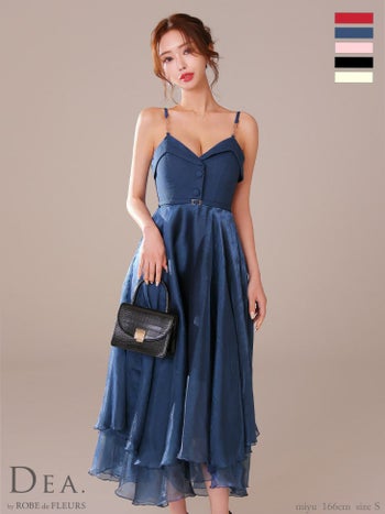 4. 【DEA.by ROBE de FLEURS/ディア】オープンバスト ボタン ベルト ハイウエスト サマーツイード ガーリー キャミソール Aラインロングドレス (DE3732)