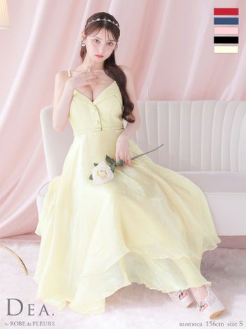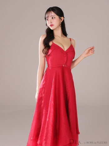4. 【DEA.by ROBE de FLEURS/ディア】ガーリー キャミソール オープンバスト ボタン ベルト サマーツイード ハイウエスト Aラインロングドレス (DE3732)