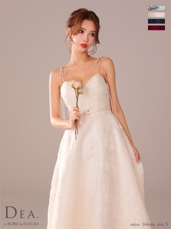 XS~Lあり!高級感があるデザイン★ 【DEA.by ROBE de FLEURS/ディア】花柄刺繍 オーガンジー ベルトデザイン エレガント オープンバスト キャミソール Aラインロングドレス (DE3766)