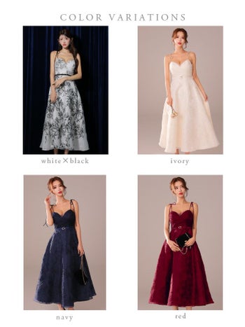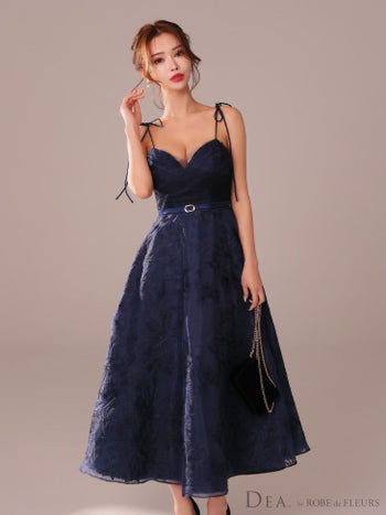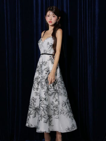 3. 【DEA.by ROBE de FLEURS/ディア】花柄刺繍 オーガンジー ベルトデザイン エレガント オープンバスト キャミソール Aラインロングドレス (DE3766)