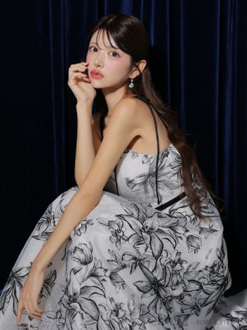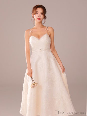 4. 【DEA.by ROBE de FLEURS/ディア】花柄刺繍 オーガンジー ベルトデザイン エレガント オープンバスト キャミソール Aラインロングドレス (DE3766)