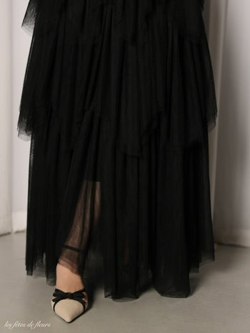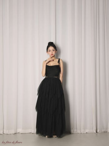 4. 【ROBEdeFLEURS/ローブドフルール】ドレープネック ティアードスカート キャミソール サテン チュール Aラインロングドレス (LF4636)