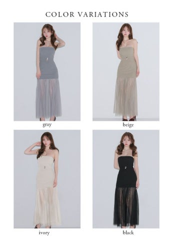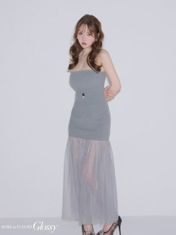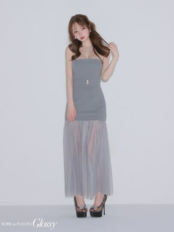 4. 【Glossy by ROBE de FLEURS/グロッシー】チュール ベア シアー セットアップ 2way キャミソール Aラインロングドレス(GL3489)