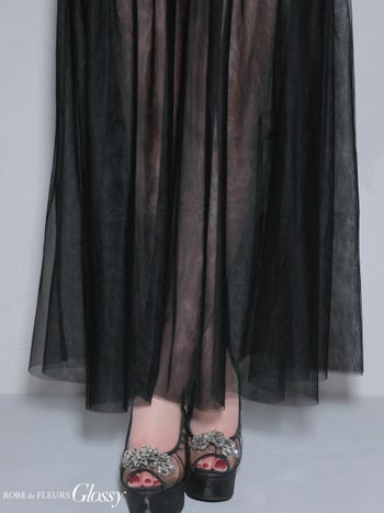 キャバドレス Glossy ROBE de FLEURS グロッシー ローブドフルール チュール ベア シアー セットアップ 2way キャミソール Aラインロングドレス