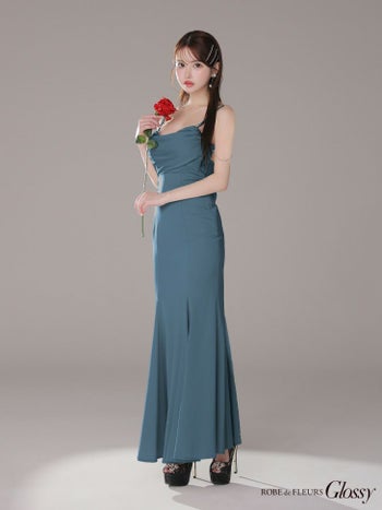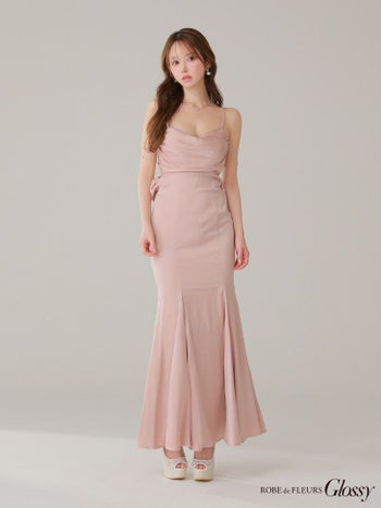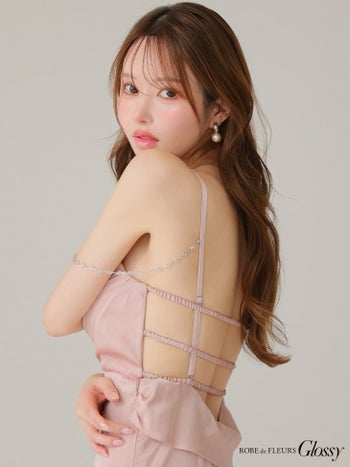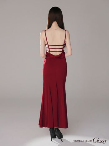 4. 予約商品【2月上旬入荷予定】【Glossy by ROBE de FLEURS/グロッシー】キャミソール サテン ビジューチェーン セクシー オープンバスト マーメイドロングドレス (GL3768)