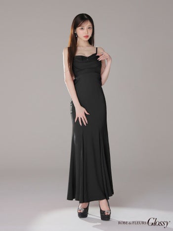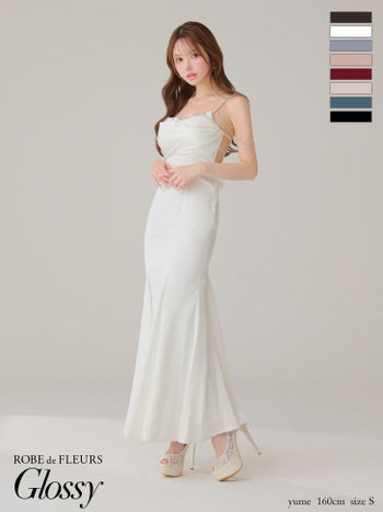 キャバドレス Glossy by ROBE de FLEURS グロッシー セクシー オープンバスト キャミソール ビジューチェーン サテン マーメイドロングドレス