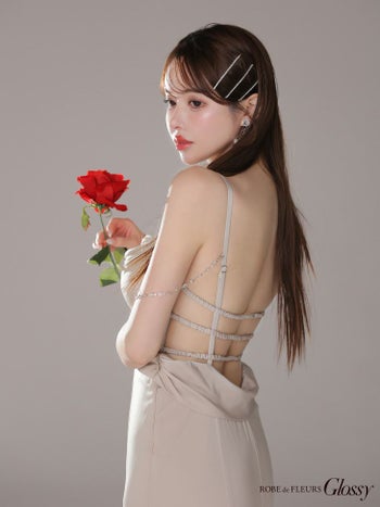 3. 予約商品【2月上旬入荷予定】【Glossy by ROBE de FLEURS/グロッシー】セクシー オープンバスト キャミソール ビジューチェーン サテン マーメイドロングドレス (GL3768)