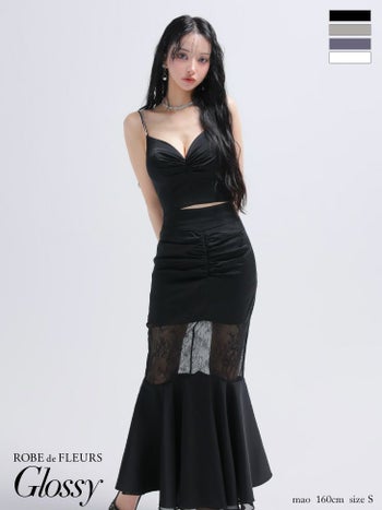 3. 【Glossy by ROBE de FLEURS/グロッシー】サテン レース セットアップ キャミソール マーメイドロングドレス (GL4110)