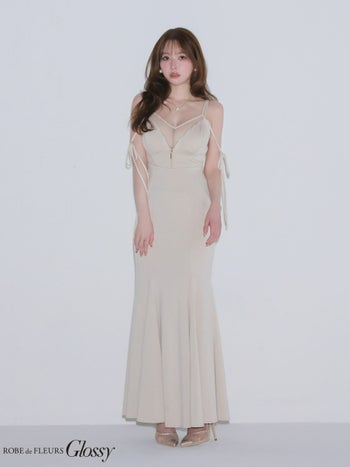 4. 【Glossy by ROBE de FLEURS/グロッシー】シアーチュール 2way ジップデザイン キャミソール リボン マーメイドロングドレス (GL4341)