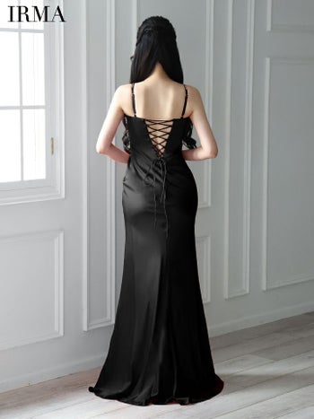 3. 【IRMA/イルマ】キャミソール ビジュー ハートカット バッククロス スリット タイトロングドレス (41739)