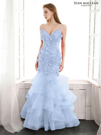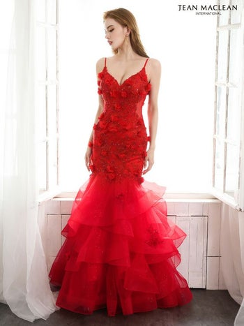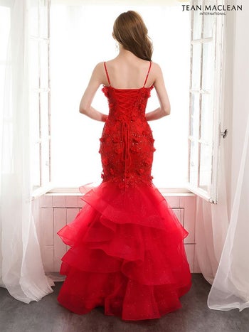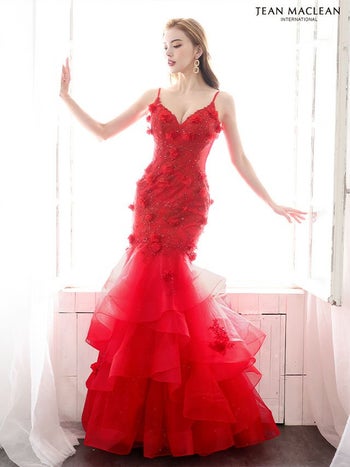 3. 【JEANMACLEAN/ジャンマクレーン】立体フラワー フリルレース ラメ マーメイド キャミソール バースデー タイトロングドレス(41592)